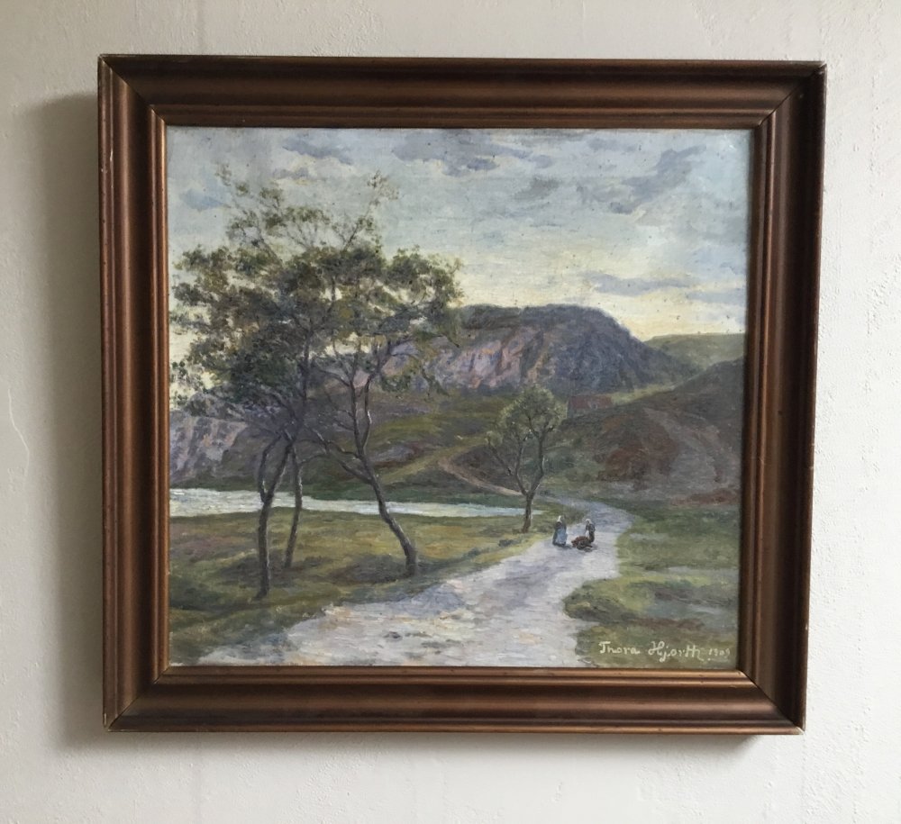Thora Hjorth. 1909. Olie på lærred. 47*50 cm. (Datter af Lauritz Hjorth). Motiv fra Hammeren